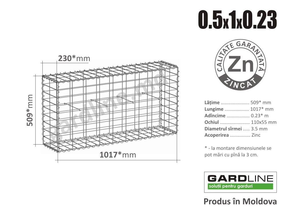 * - la montarea gabionului, mărimile se măresc pîna la 3 cm.