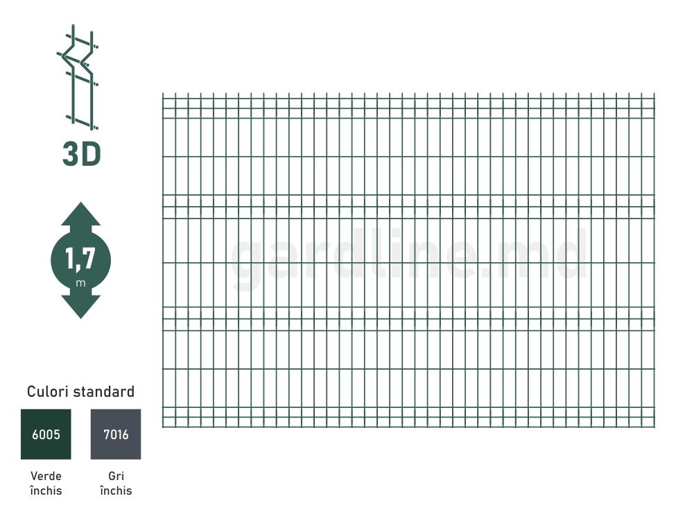 – Panou gard bordurat zincat și vopsit OPTIMA D-3,7 Н-1,7m L-2,5m RAL6005