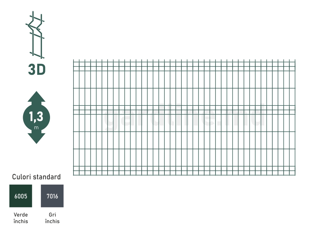 – Panou gard bordurat zincat și vopsit ECO D-3,2 Н-1,3m L-2,5m RAL6005