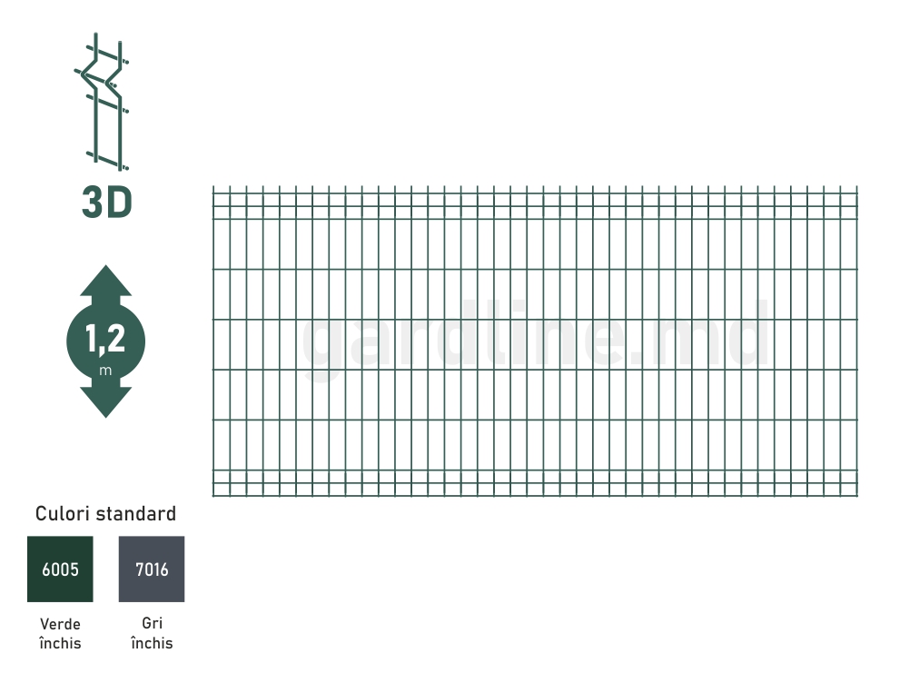 – Panou gard bordurat zincat și vopsit OPTIMA D-3,7 Н-1,2m L-2,5m RAL6005