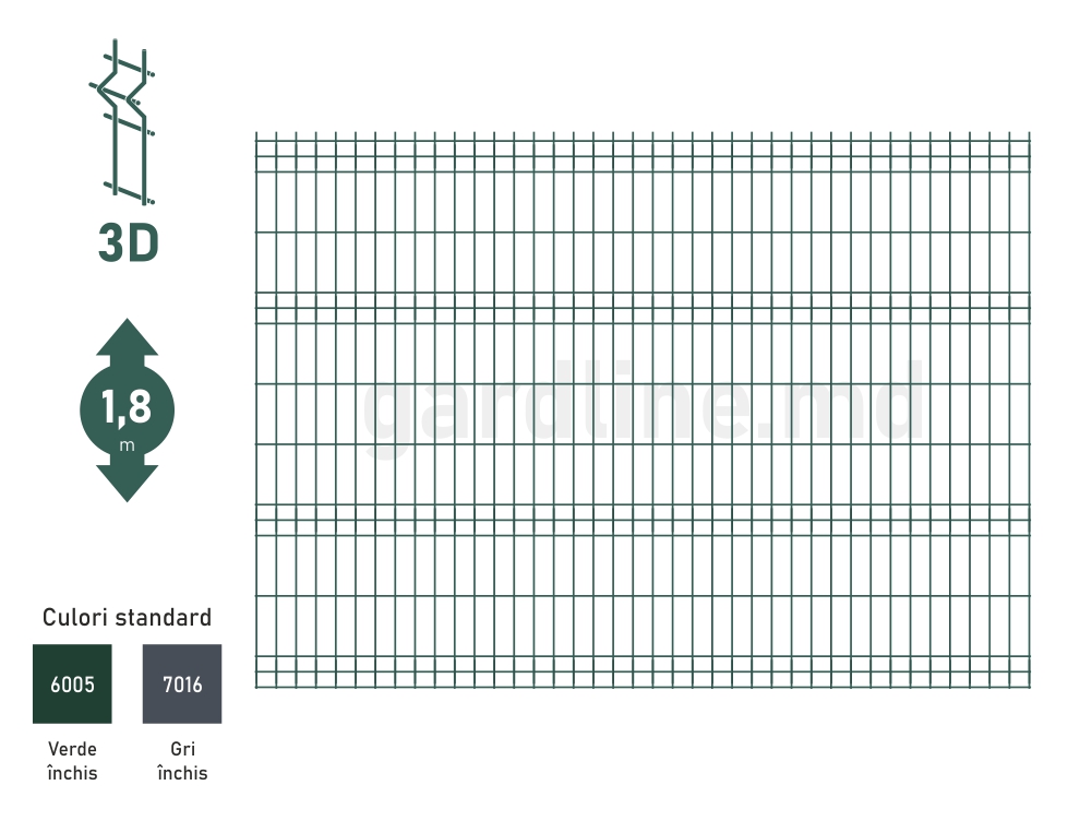 – Panou gard bordurat zincat și vopsit OPTIMA D-3,7 Н-1,8m L-2,5m RAL6005
