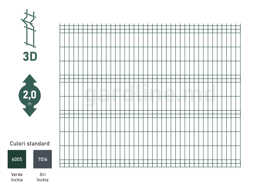 – Panou gard bordurat zincat și vopsit ECO D-3,2 Н-2,0m L-2,5m RAL6005