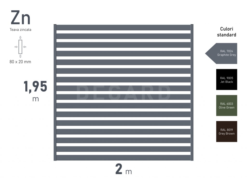 Особое внимание уделено покрытию: забор ORIZONT окрашивается в популярный графитово-серый цвет (RAL 7024) с тонкой текстурой. Порошковая окраска в сочетании с антикоррозийной защитой гарантирует долговечность, устойчивость к выгоранию и сохранение эстетичного внешнего вида на долгие годы.