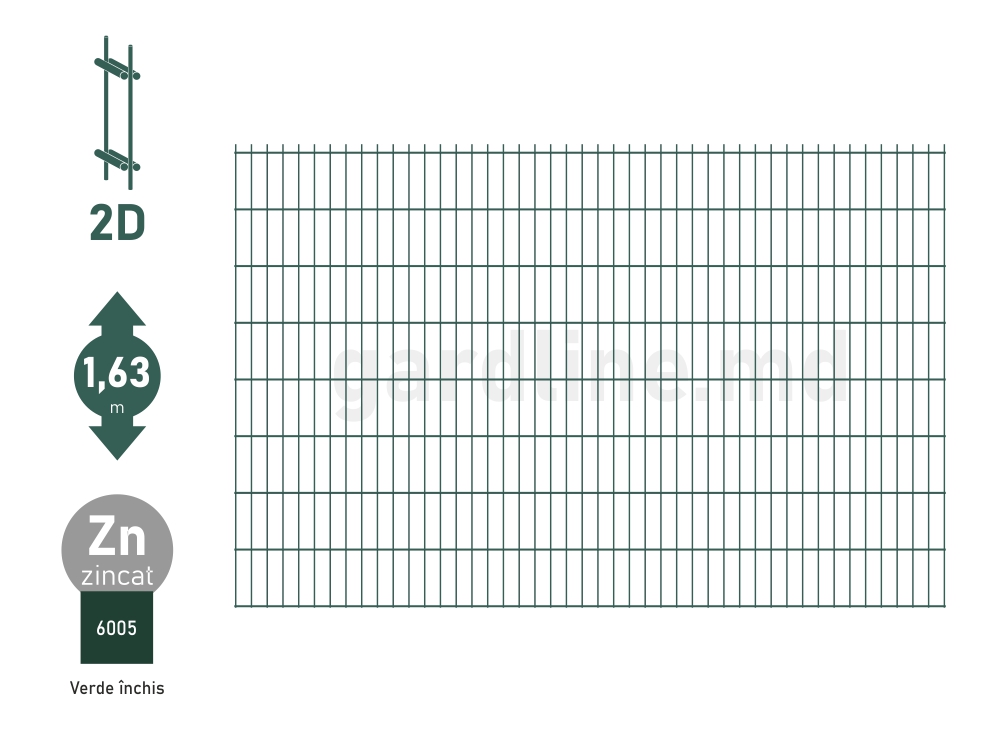 – Заборная панель оцинкованная и крашенная DUOS 2D Н-1,63м L-2,5м RAL6005