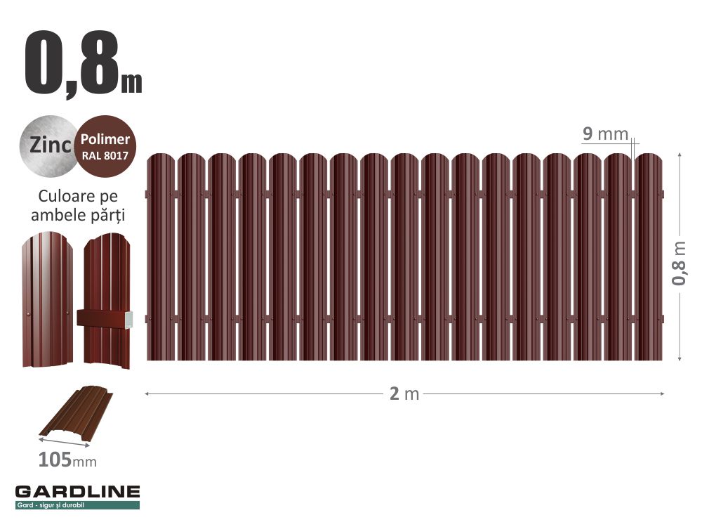 Gard din ștachet metalic zincat. Н-0,8m L-2m. S105x17 RAL8017