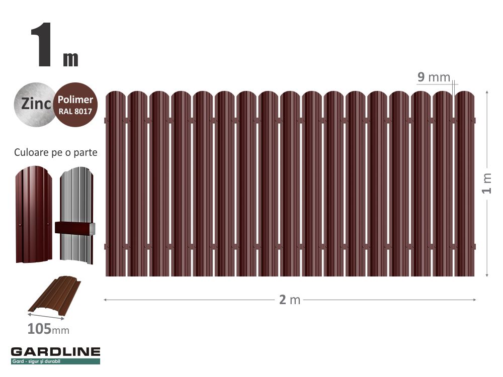Gard din ștachet metalic zincat. Н-1m L-2m. S105x17 RAL8017
