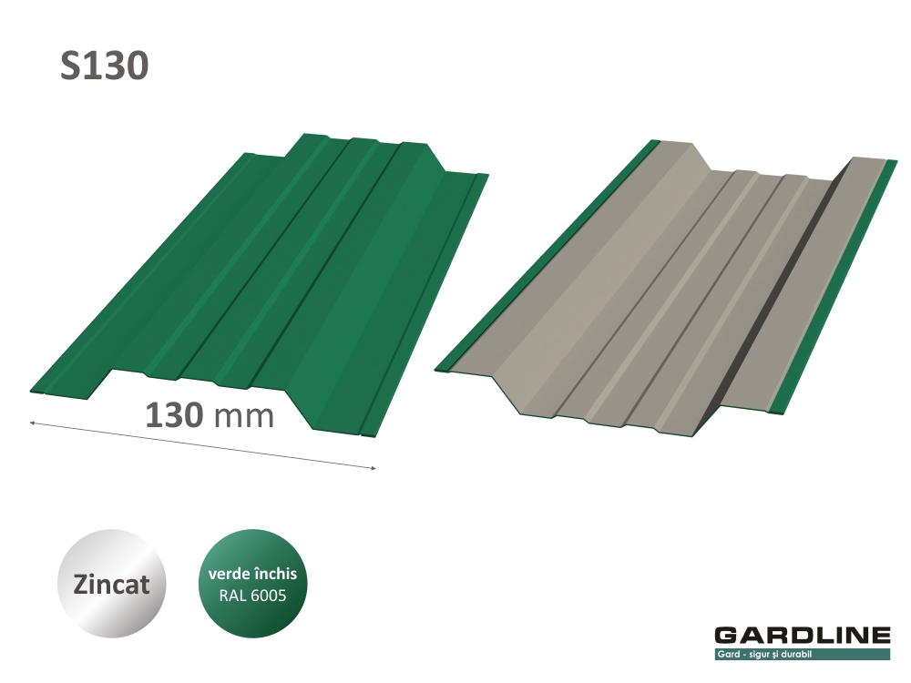 Gard din ștachet metalic zincat. Н-1,25m L-2m. S130x13 RAL6005