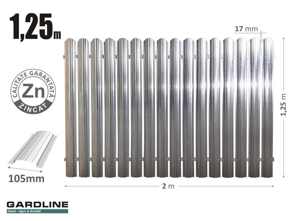 – Gard din ștachet metalic zincat. Н-1,25m L-2m. S105x16