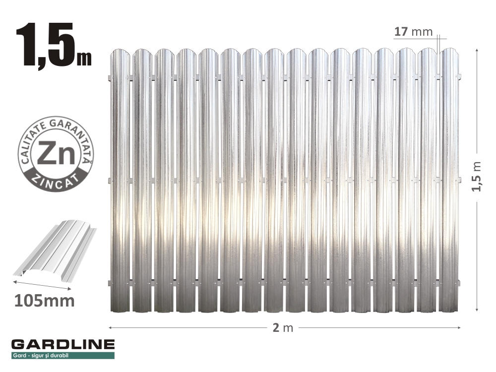 – Gard din ștachet metalic zincat. Н-1,5m L-2m. S105x16
