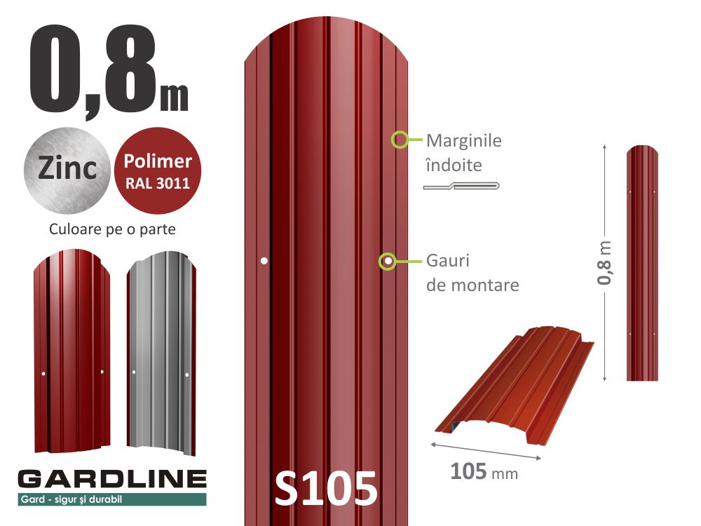 – Ștacheta metalica zincată S105 RAL3011 H-0,8m