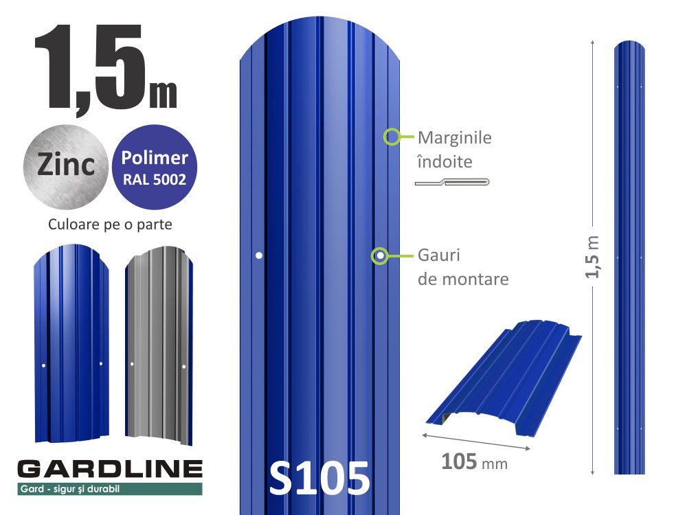 – Ștacheta metalica zincată S105 RAL5002 H-1,5m