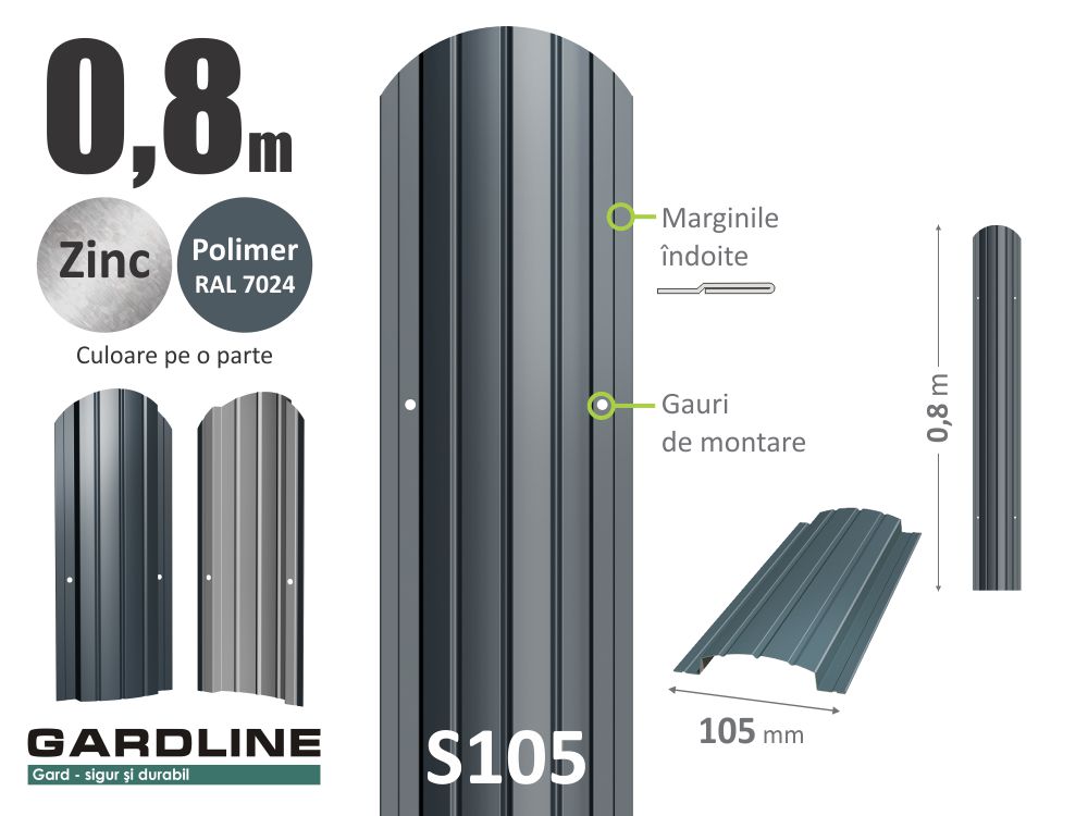 – Ștacheta zincată S105 RAL7024 H-0,8m