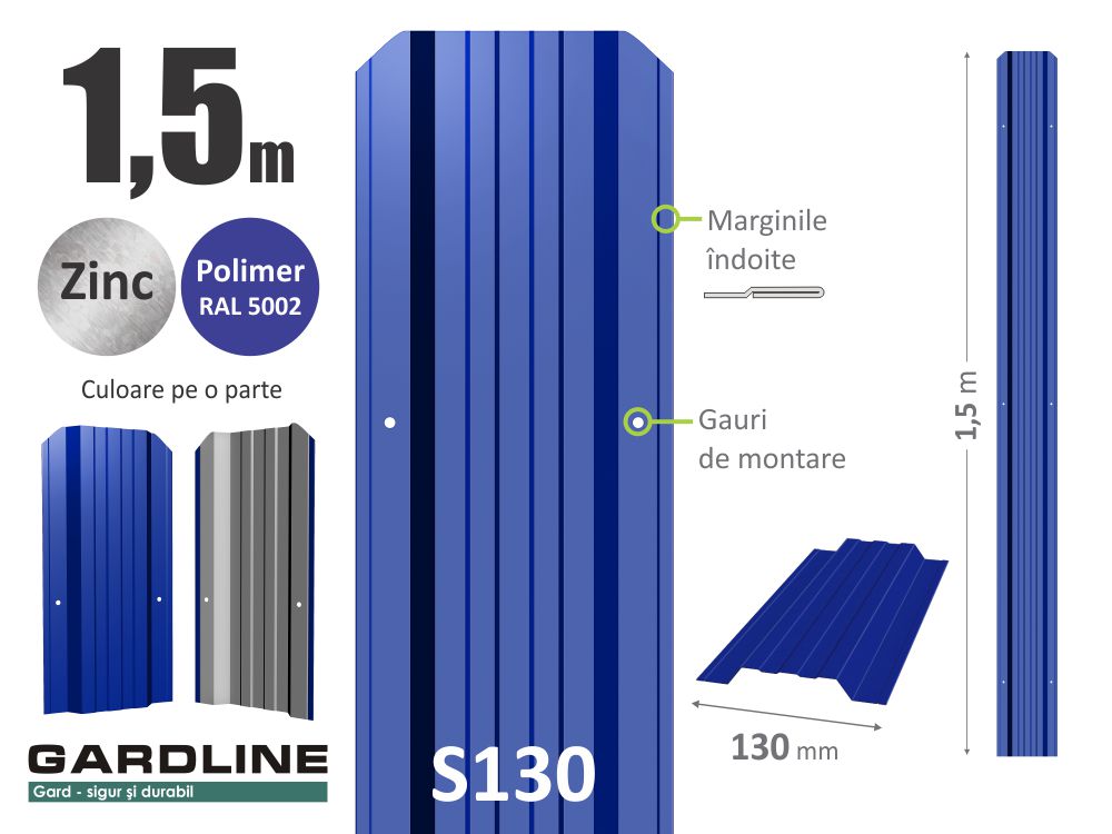 – Ștacheta metalica zincată S130 RAL5002 H-1,5m