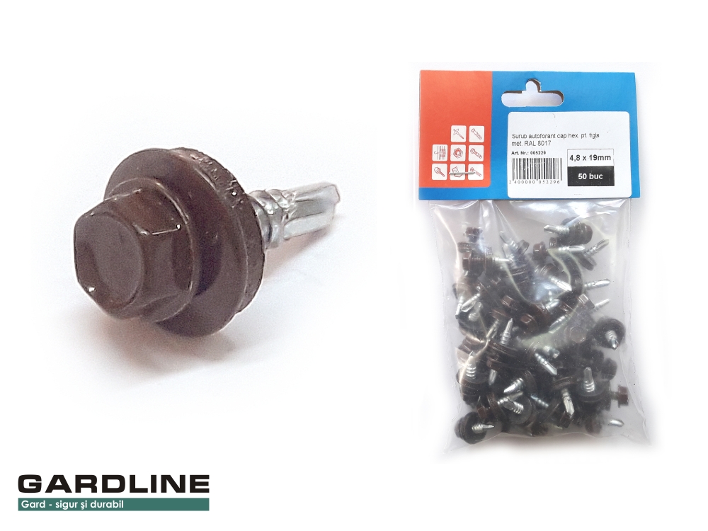 – Șurub autoforant în metal 4,8x19 cu şaiba EPDM RAL8017 50buc.