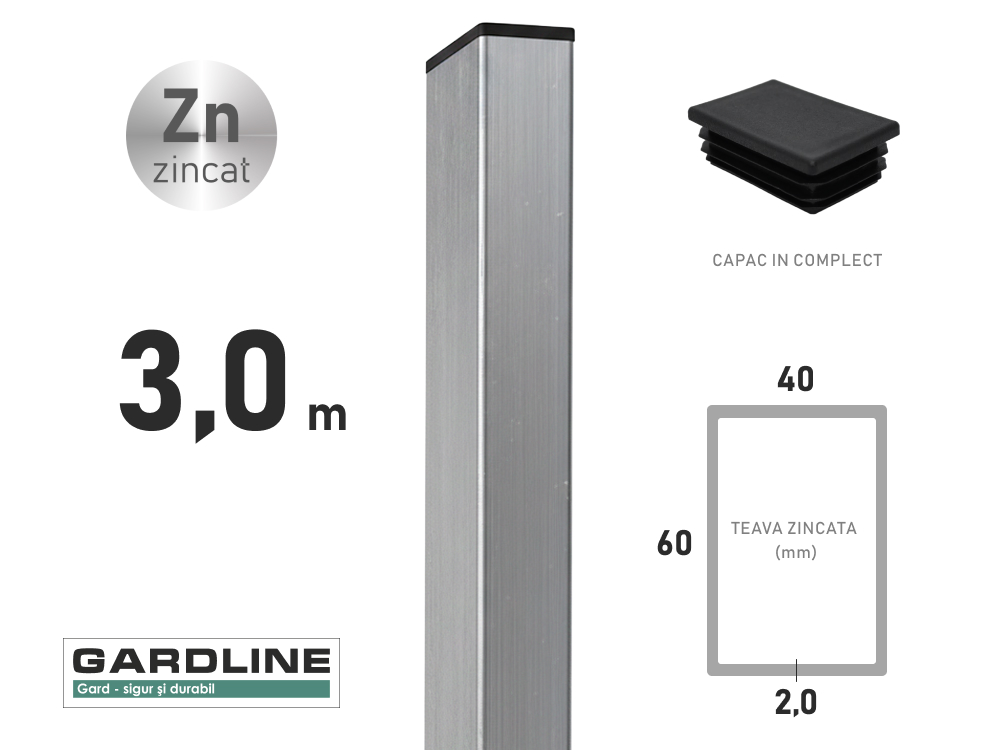 – Stalp zincat 60x40x2,0mm L-3,0m