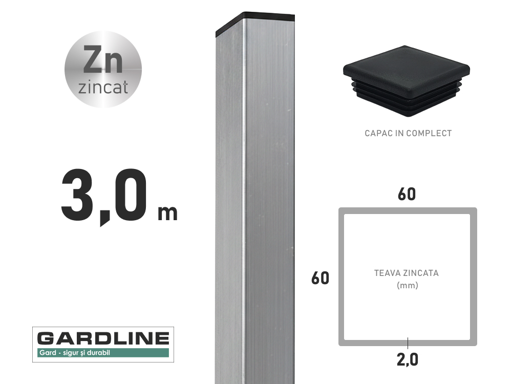 – Stalp zincat 60x60x2,0mm L-3,0m