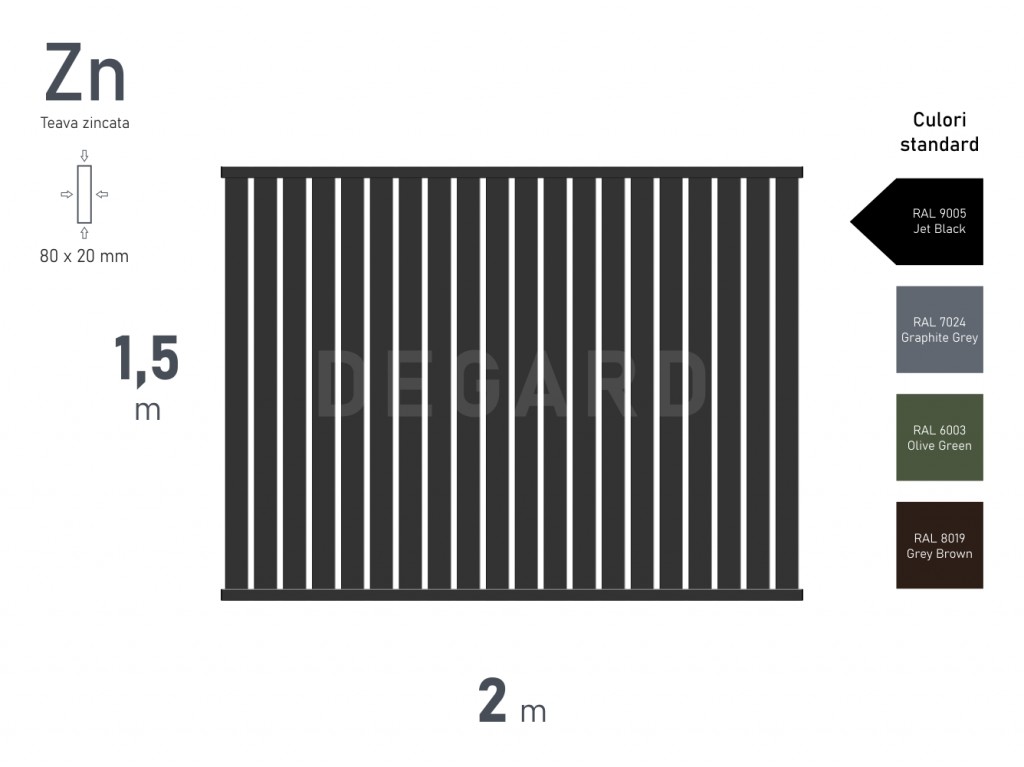 Конструкция выполнена из оцинкованной профильной трубы, что гарантирует высокую прочность и устойчивость к коррозии. Вертикальные ламели из профиля 80×20 мм формируют выразительный ритм и обеспечивают баланс между приватностью и визуальной легкостью, а усиленные горизонтальные элементы 40×40 мм создают жесткость и надежность всей конструкции.