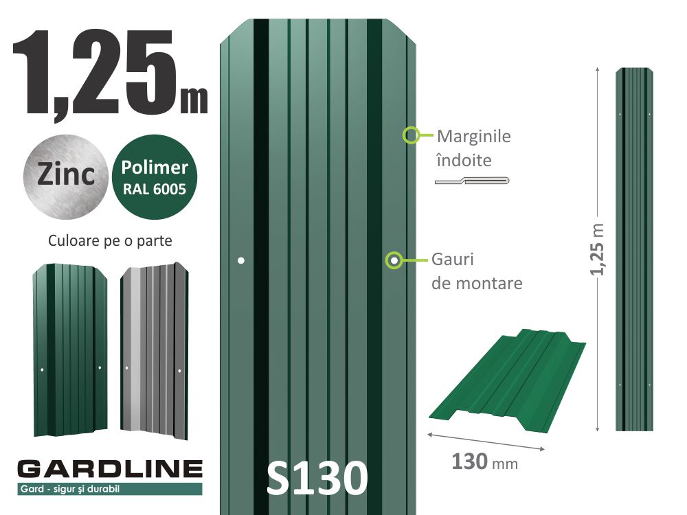 Штакетник металлический оцинкованный S130 RAL6005 Н-1,25м