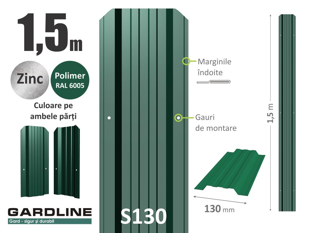 – Штакетник металлический оцинкованный S130 RAL6005 Н-1,5м