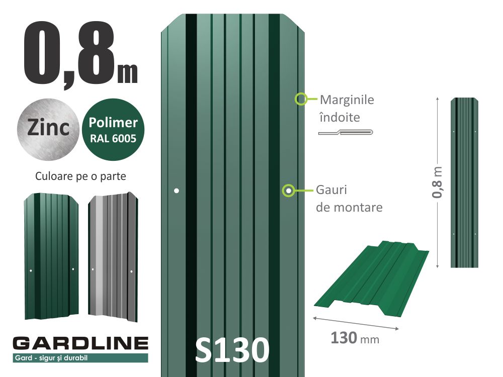– Штакетник металлический оцинкованный S130 RAL6005 Н-0,8м