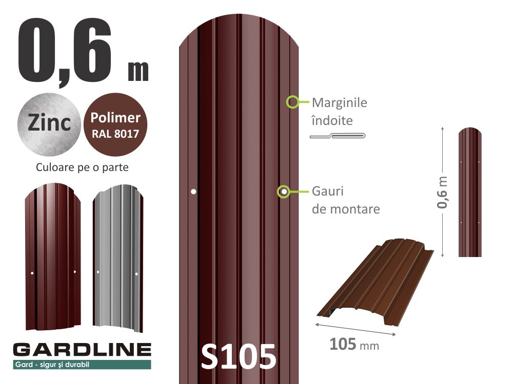 Штакетник металлический оцинкованный S105 RAL8017 Н-0,6м