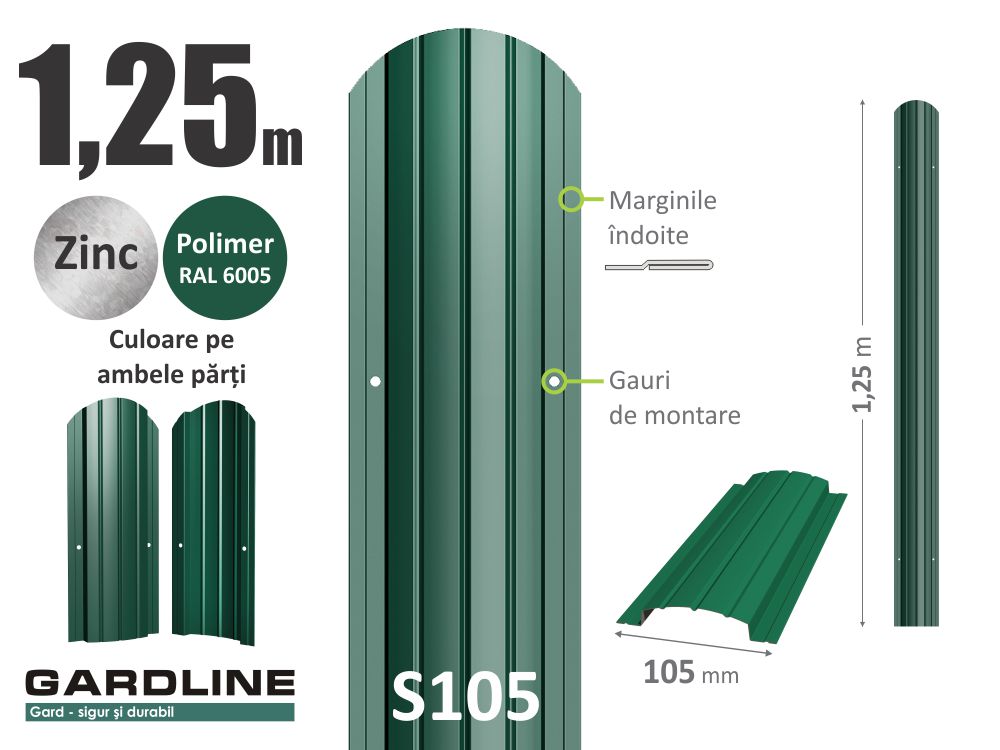 – Штакетник металлический оцинкованный S105 RAL6005 Н-1,25м