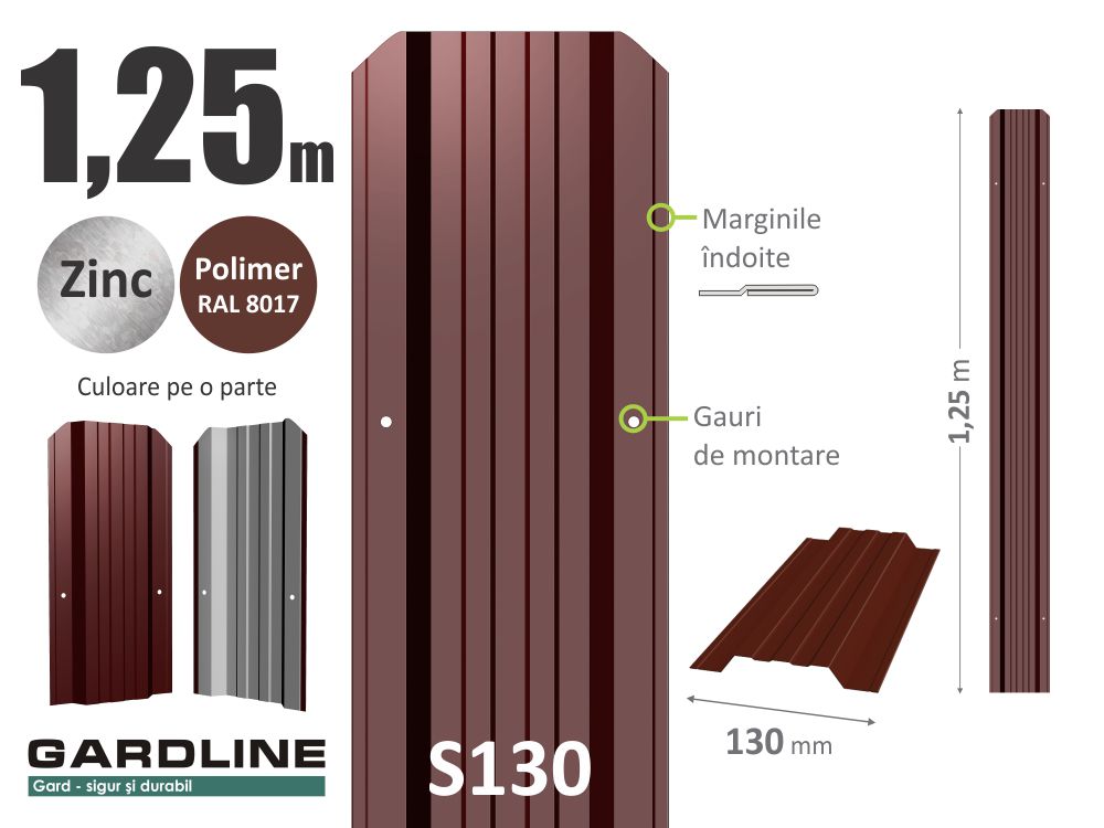 Штакетник металлический оцинкованный S130 RAL8017 Н-1,25м