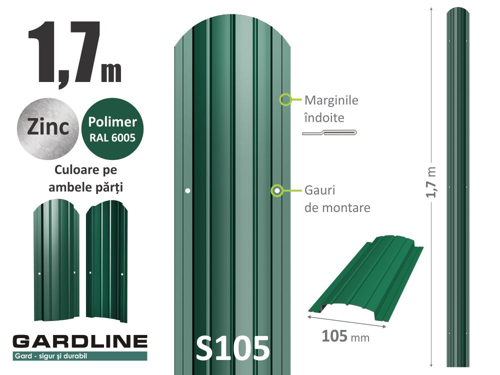 – Штакетник металлический оцинкованный S105 RAL6005 Н-1,7м