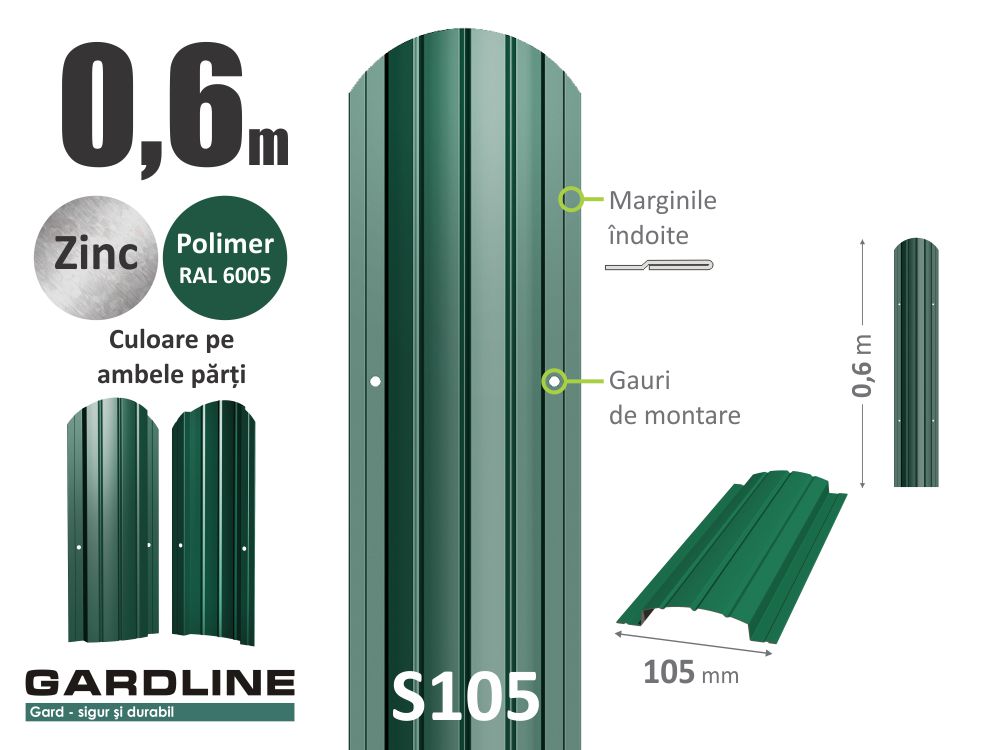 – Штакетник металлический оцинкованный Н-0,6м S105 RAL6005